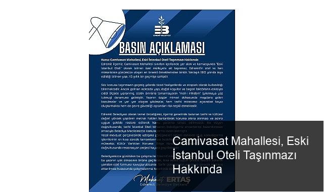 Edremit Belediyesi olarak temel önceliğimiz, ilçemiz genelinde bulunan tarihi ve kültürel pahası yüksek yapıların metruk halden kurtarılarak müdafaa altına alınması ve aslına uygun halde restore edilerek kamu faydasına tahsis edilmesidir. Bu vizyon doğrultusunda, tarihi İstanbul Oteli binasının belediyemiz envanterine kazandırılması emeliyle Belediye Meclisimizce kamulaştırma kararı alınmıştır.
