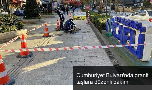 Büyükşehir Belediyesi Park ve Bahçeler Dairesi Başkanlığı’na bağlı gruplar, İzmit Cumhuriyet Bulvarı’nda vakitle yerinden oynayan, kırılan yahut hasar gören granit taşları öncelikle tespit ediyor. Yapılan incelemelerin akabinde oynayan taşların tamiri gerçekleştirilirken, tamiri mümkün olmayan eski ve hasarlı taşlar ise yeni taşlarla değiştiriliyor.