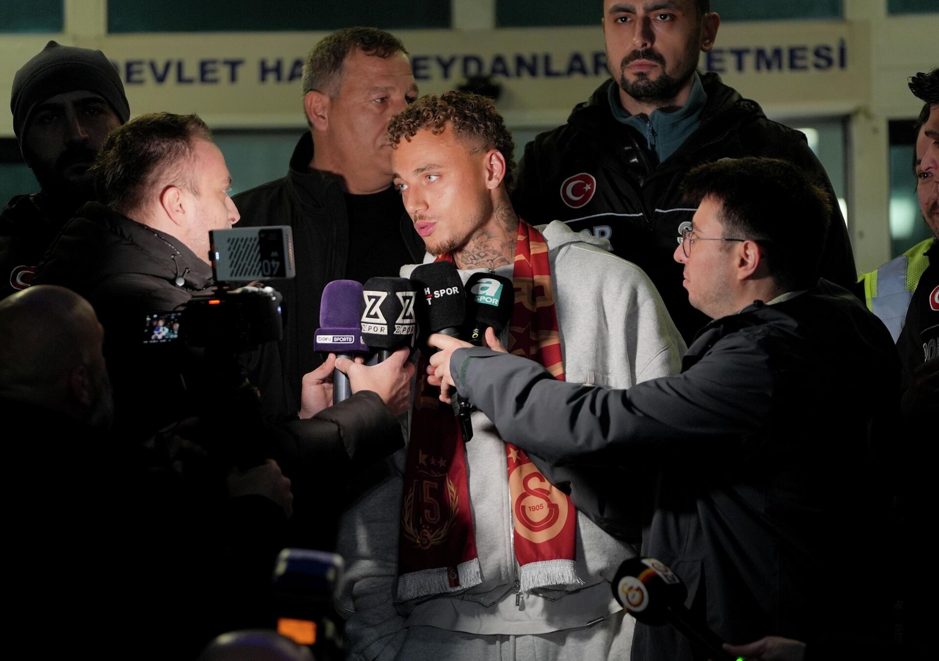 İtalya’nın Napoli kentinden Atatürk Havalimanı Genel Havacılık Terminali’ne özel uçakla gelen 26 yaşındaki kanat oyuncusu Noa Lang’i, sarı-kırmızılı yetkililer ve bir küme taraftar karşıladı.