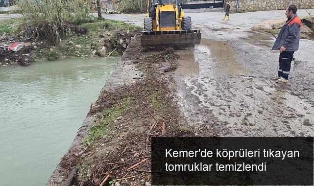 Kemer Belediye grupları, şiddetli sağanak nedeniyle Beldibi Mahallesi’ndeki köprüleri tıkayan tomrukları ve öteki atıkların paklığını gerçekleştirdi.