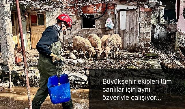 Sağanak yağışlara karşı alanda olan İzmir Büyükşehir Belediyesi takımları, tüm canlıları koruyarak yürekleri ısıtan imajlara imza atıyor.